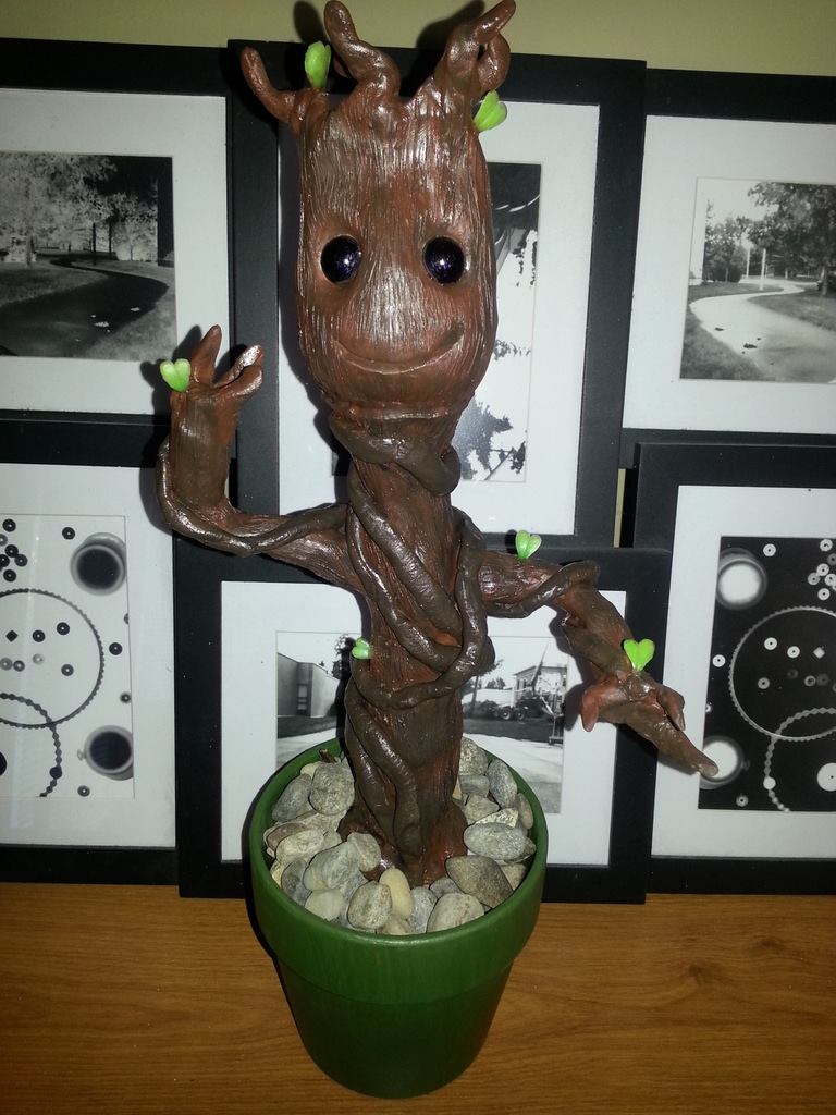 2 packages of $1.25 modeling clay from the dollar store. A $1.00 clay plant pot from a thrift store. Two $1.00 pots of brown craft paint, a $1.00 pot of puzzle sealer and two beads! First time I’ve ever used modeling clay.