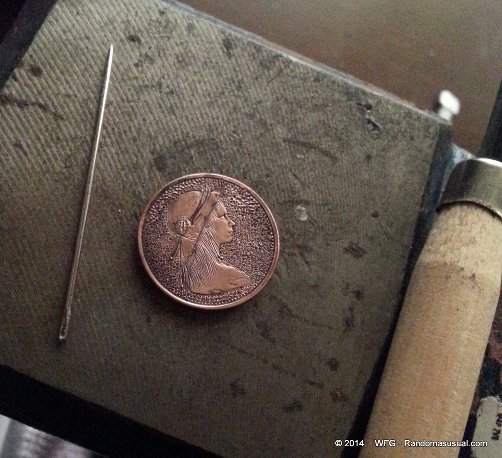 Second coin carving. 1967 Canadian penny. Used the same tools as I did for the Hobo Nickel. A couple of dollar store wood chisels, a sewing needle and a small hammer for putting watch cases together. Basically all the wrong equipment but I really wanted to try this and couldn’t wait for my supplies to arrive.