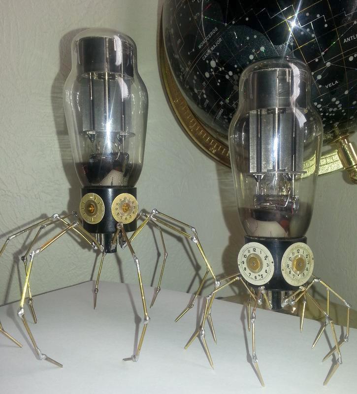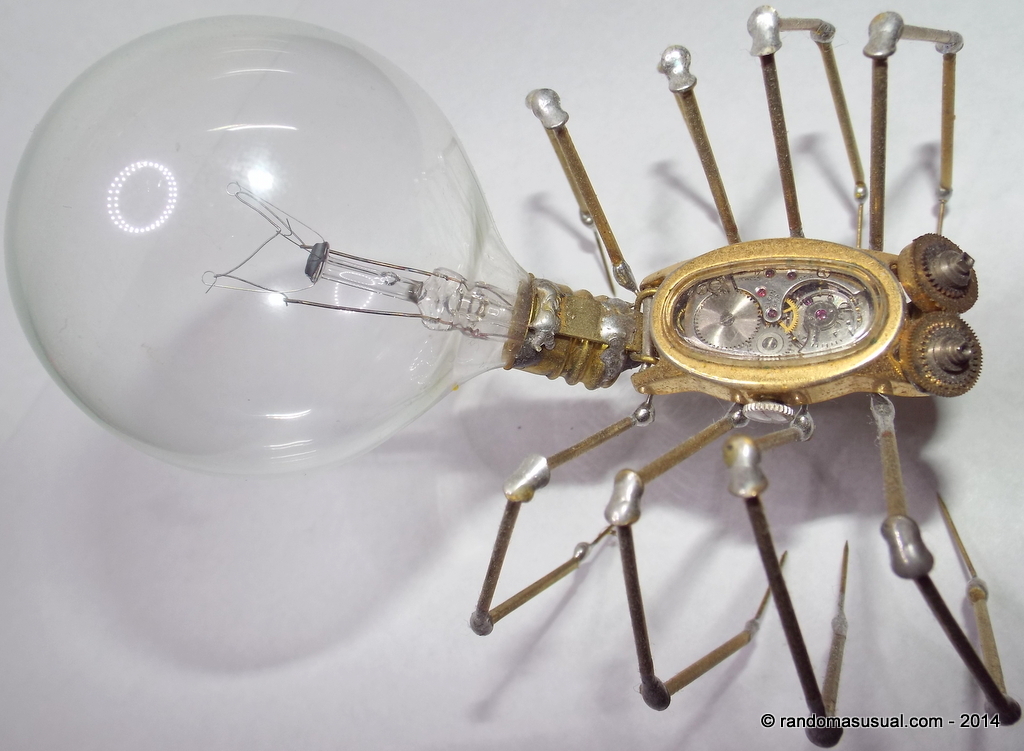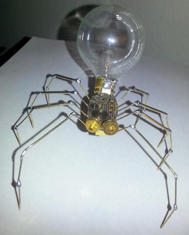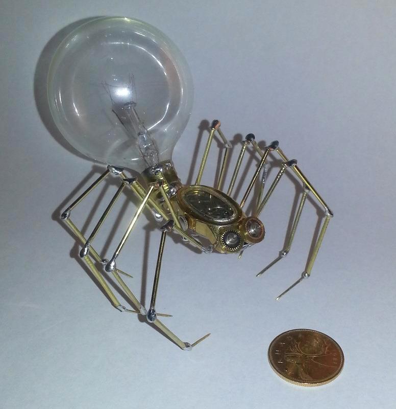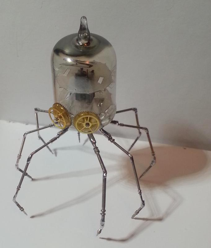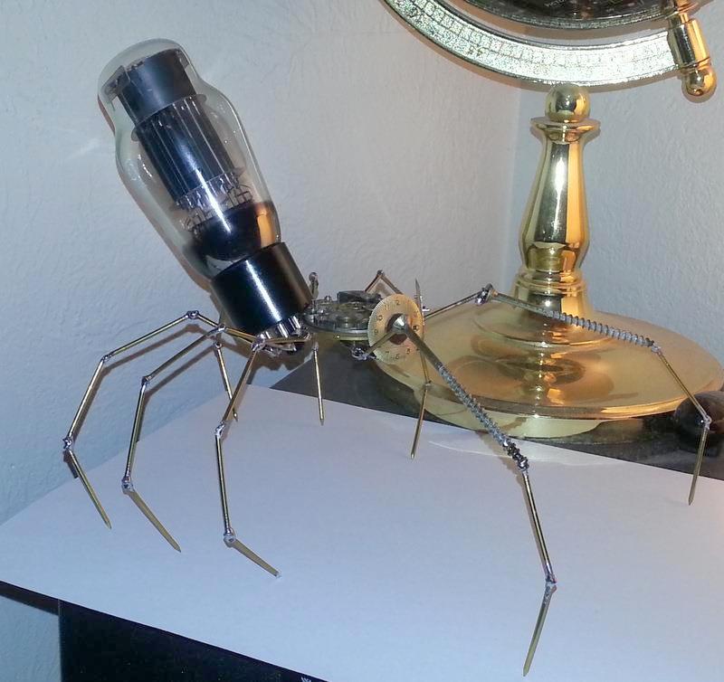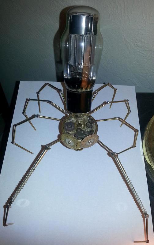 I also make aliens and spiders out of light bulbs, radio tubes, watch parts, nails and screws.