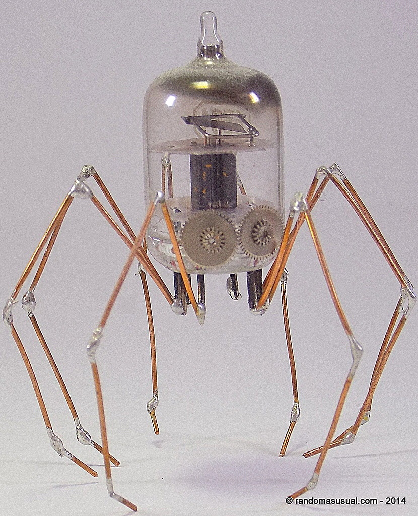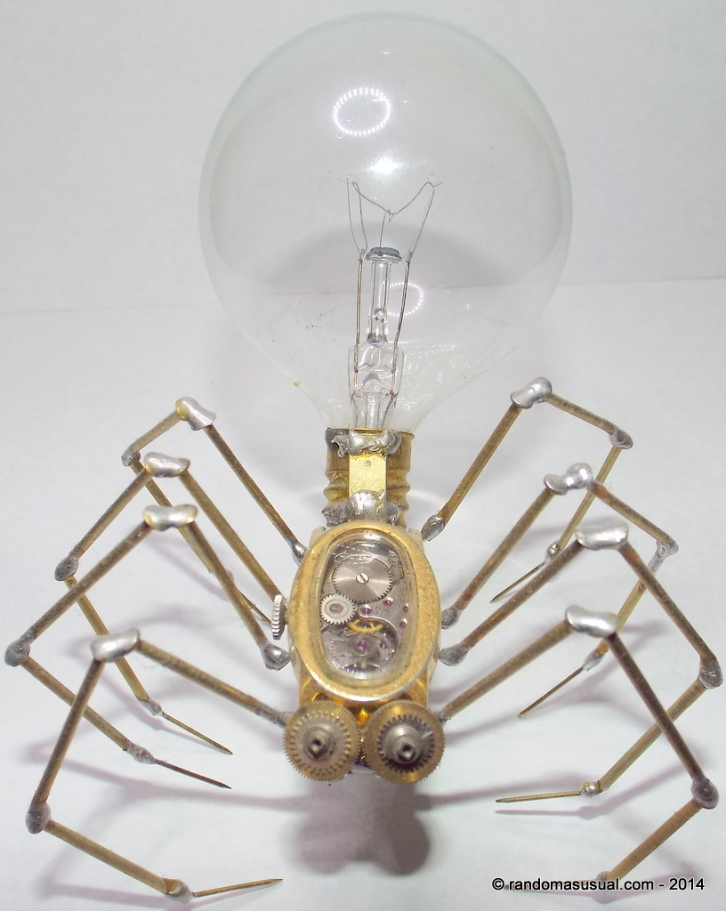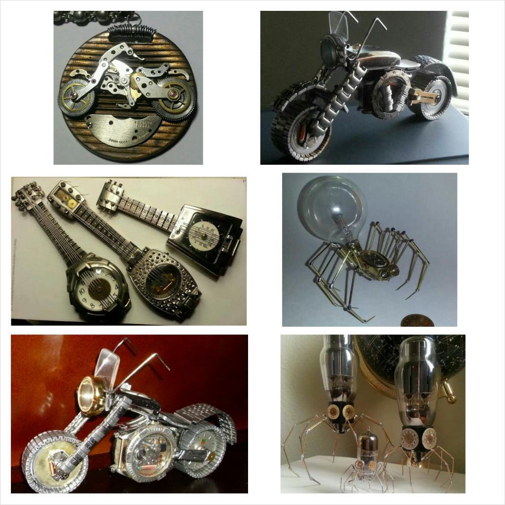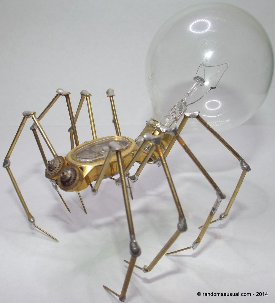 I also make aliens and spiders out of light bulbs, radio tubes, watch parts, nails and screws.
