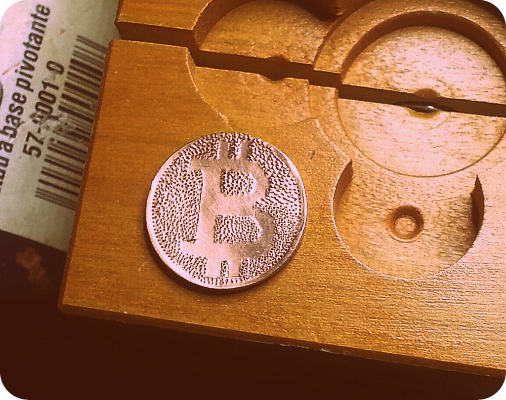 Tried to make a Bitcoin out of a Canadian Penny using a sewing needle and a small hammer after buffing off the original face with a rotary tool.