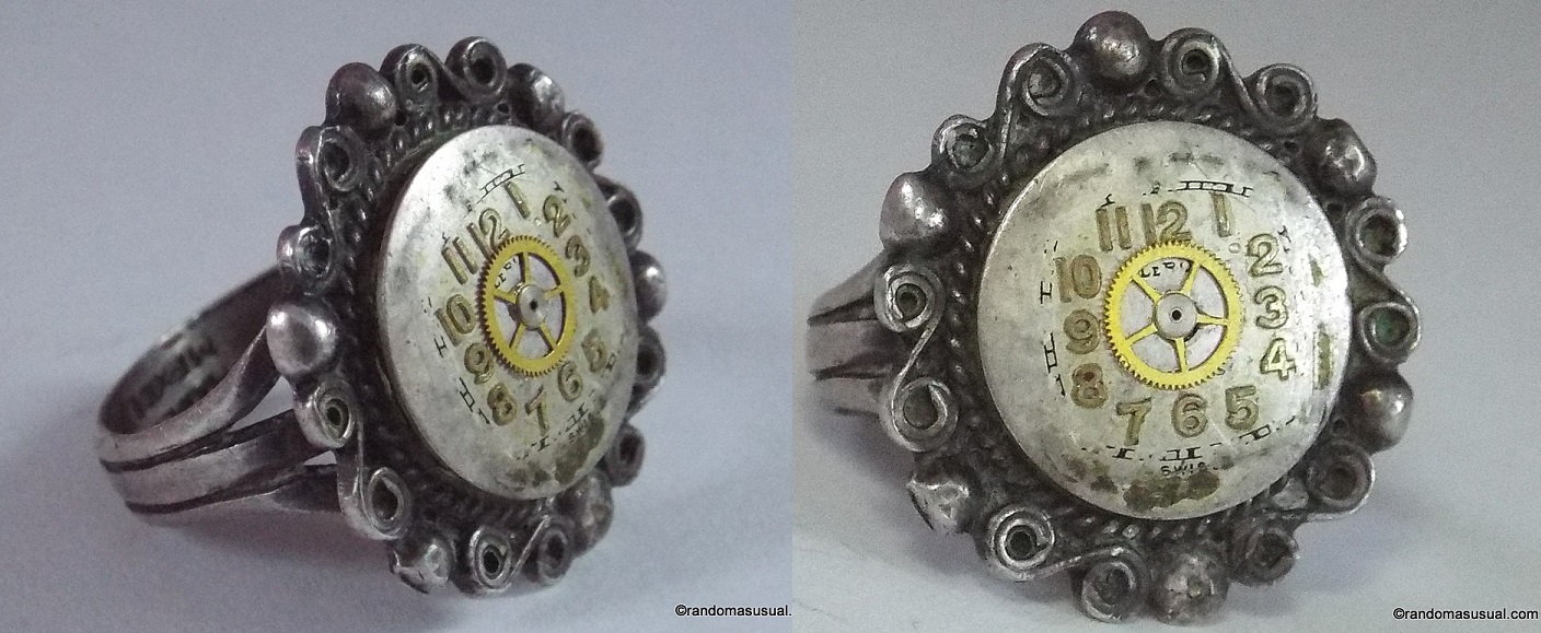 Oct. 16/14 – Added watch parts to a sterling silver ring from Mexico that had no stone.